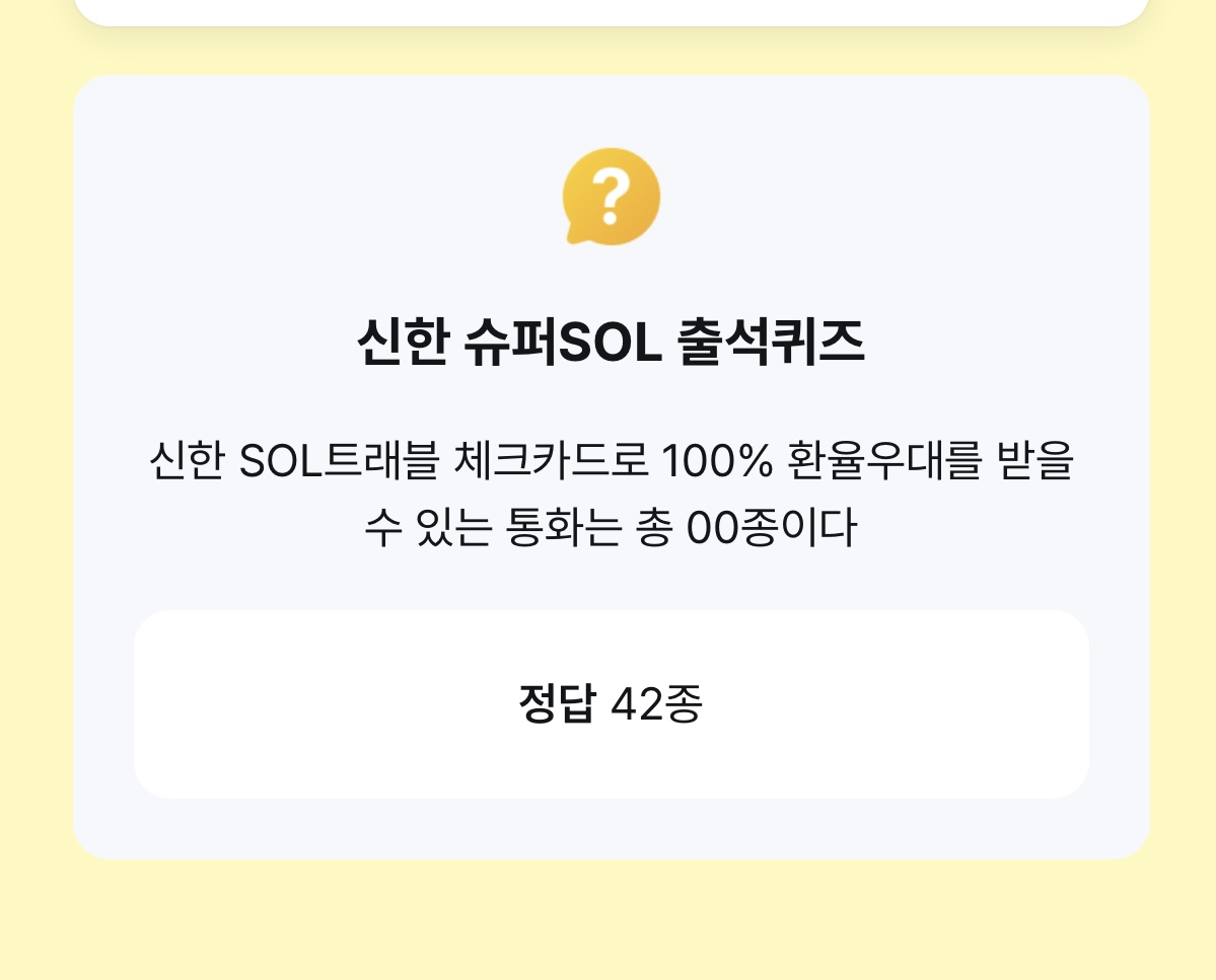 퀴즈 : 신한 SOL트래블 체크카드로 100% 환율우대를 받을 수 있는 통화는 총 00종이다