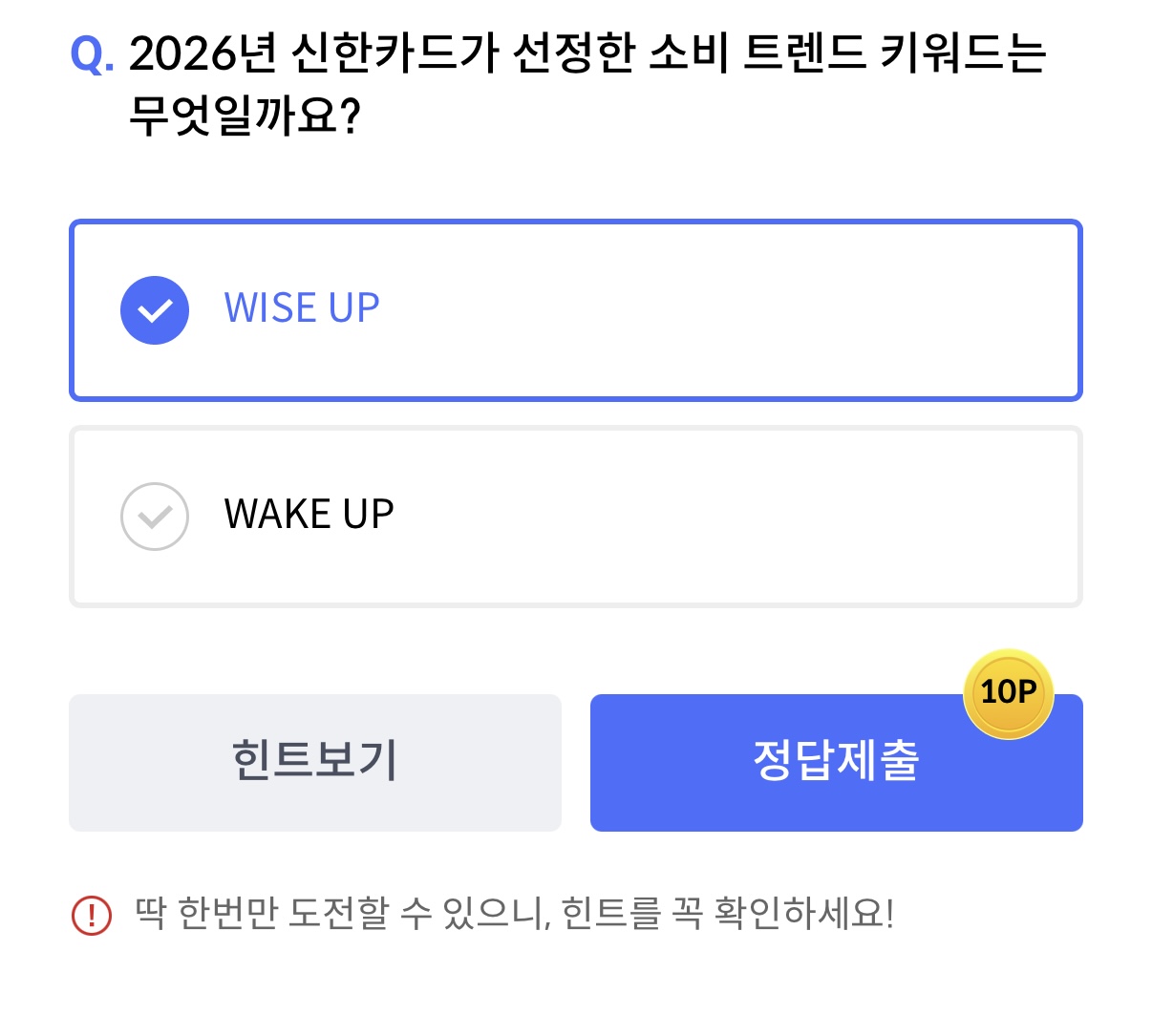퀴즈 : 2026년 신한카드가 선정한 소비 트렌드 키워드는 무엇일까요?